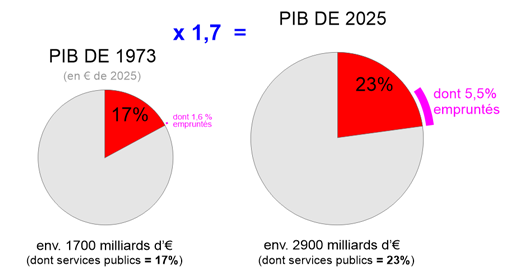comparaison PIB 1973 et 2025, avec en rouge la part du PIB NON MARCHAND